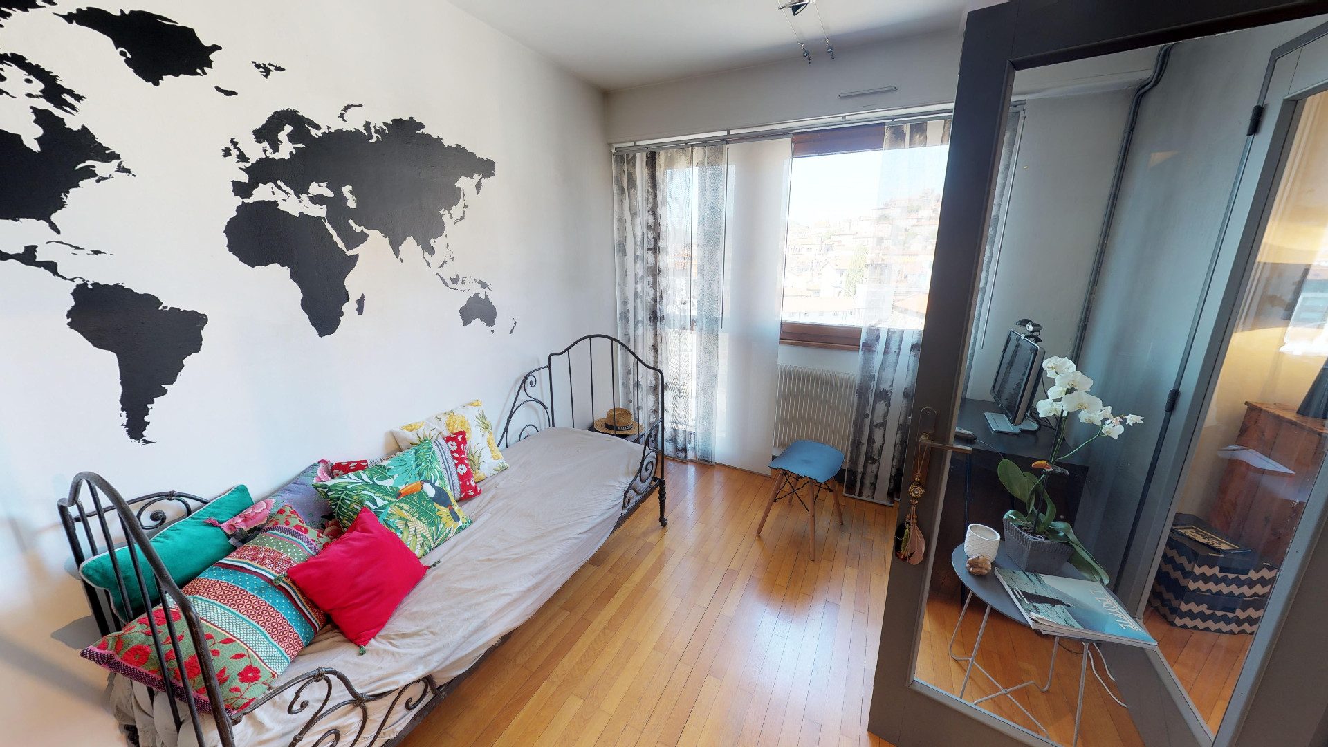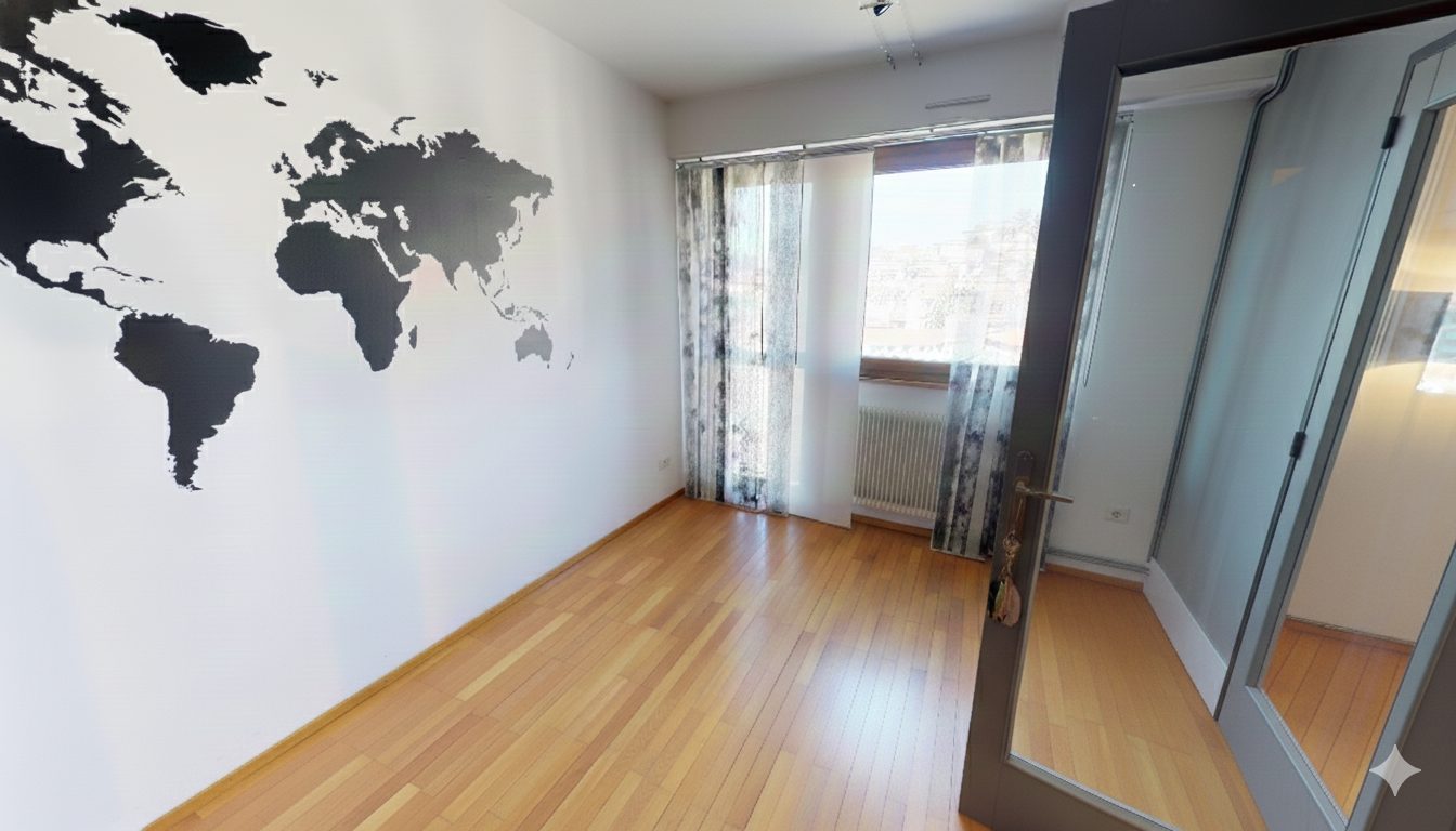 • Trois chambres, dont une avec accès au 2ᵉ balcon, partagé avec la cuisine