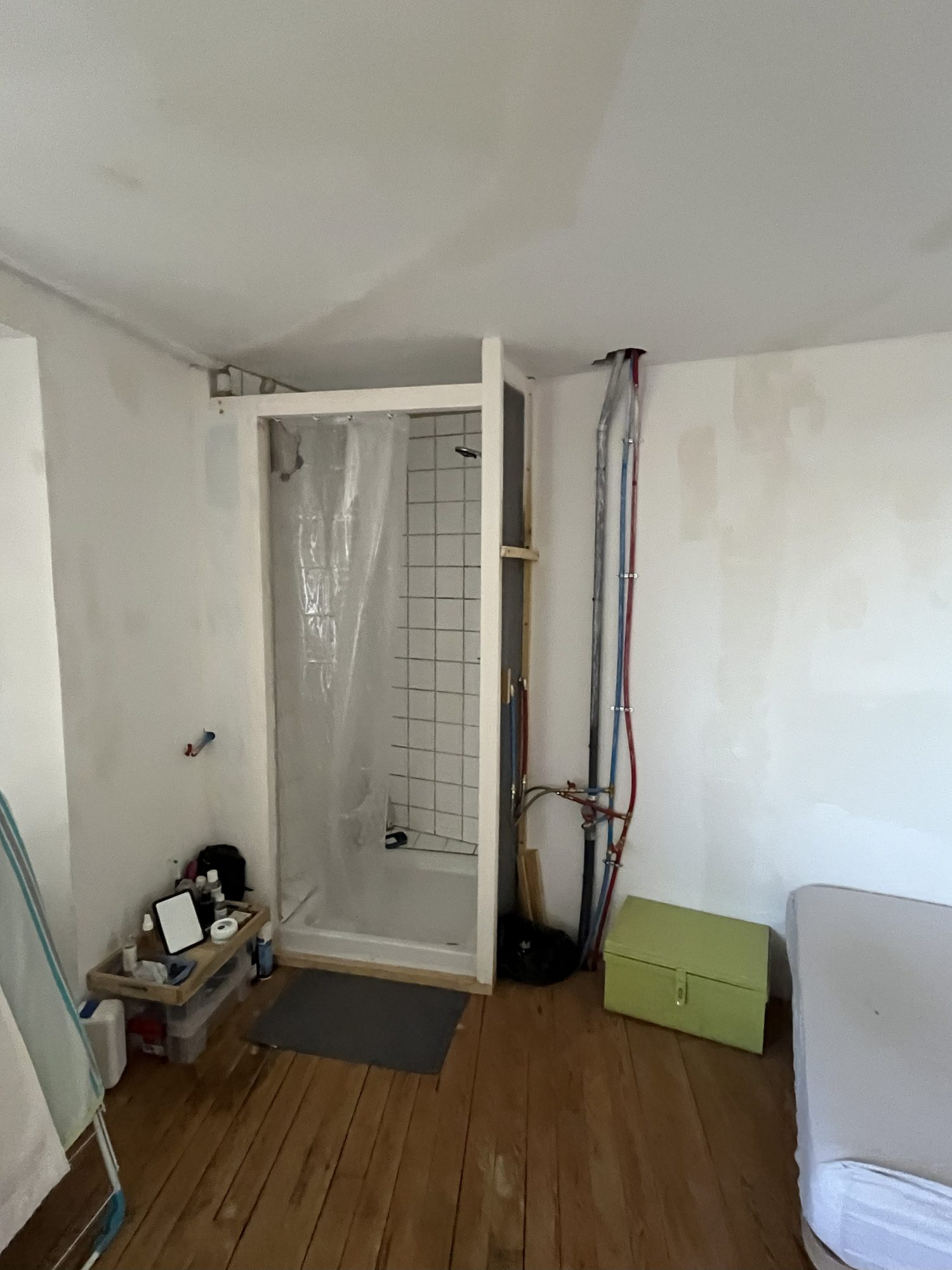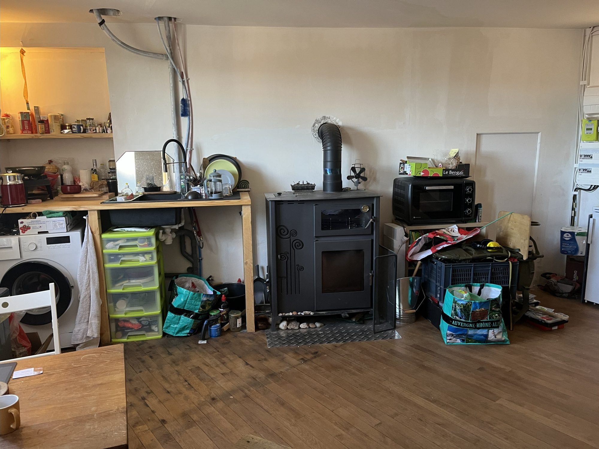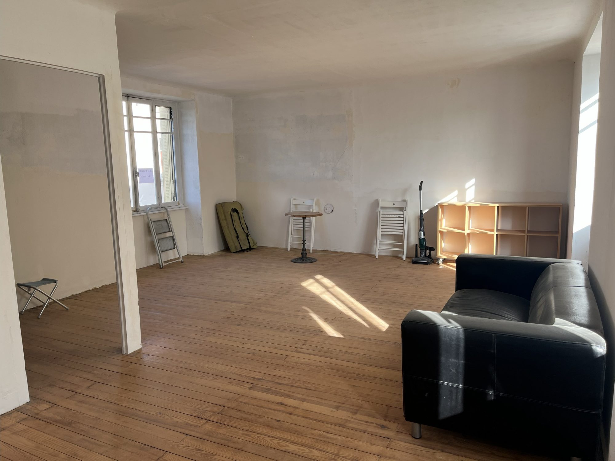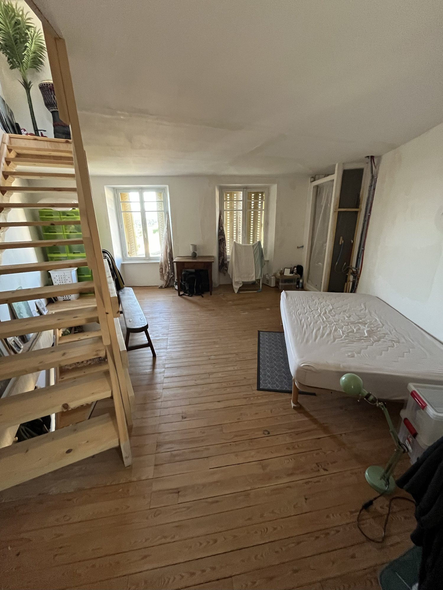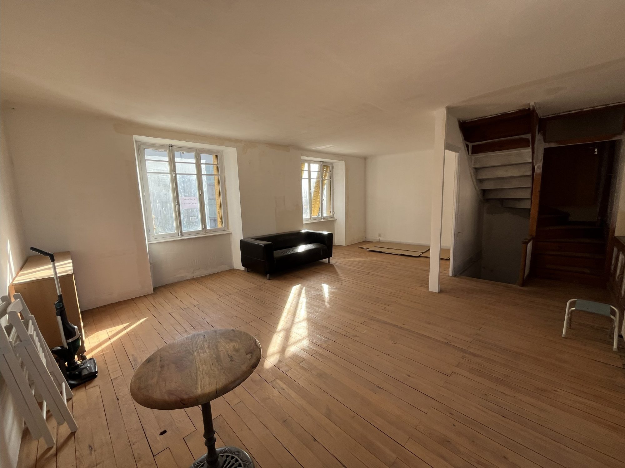 Le 1er logement habitable de suite sur 3 niveaux d'environ 78 m2, est composé au rdc d'une cuisine séjour avec poêle à pelé, au 1er étage d'une chambre avec douche et au 2ème d'une chambre avec WC.