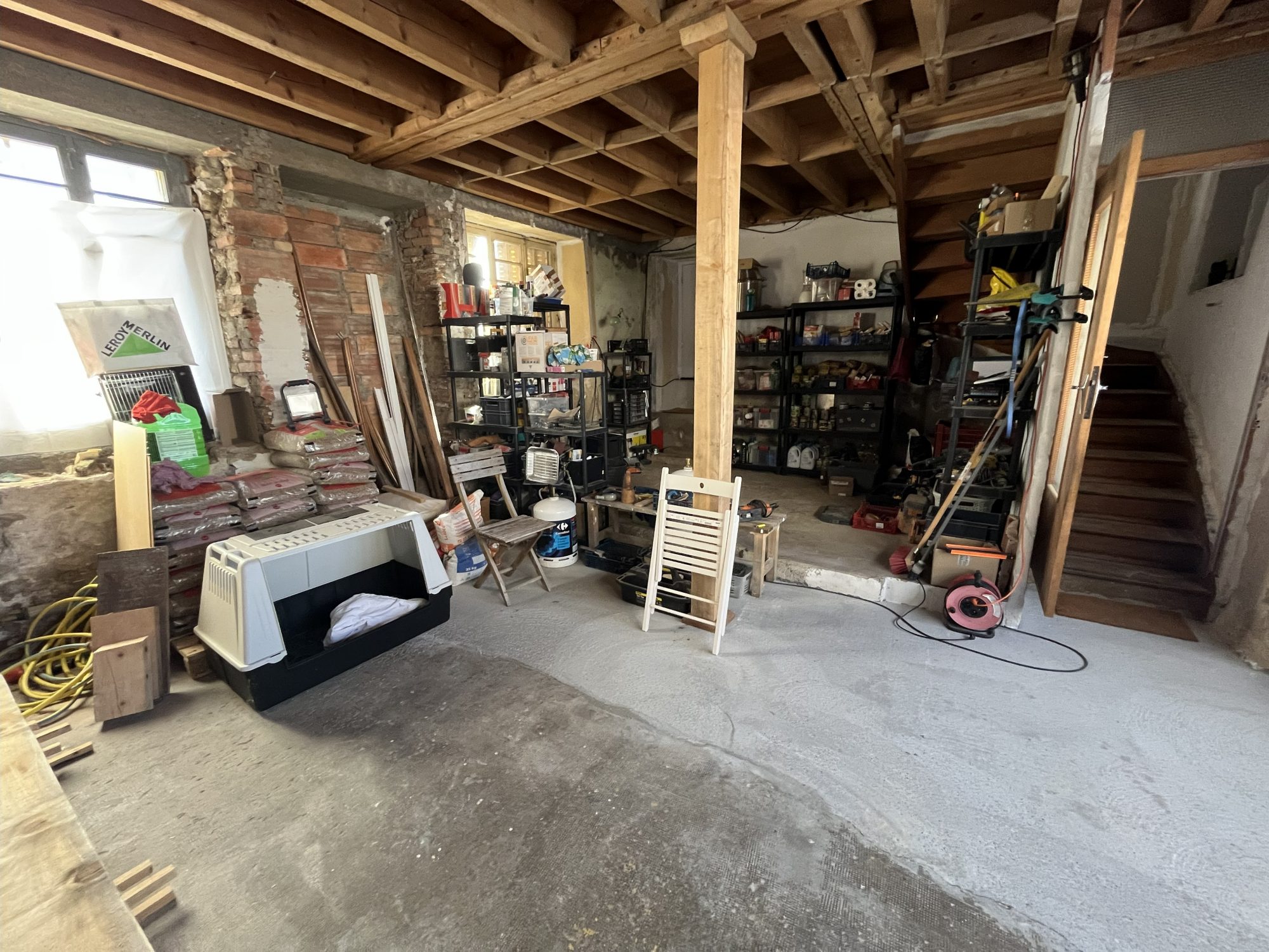 Le 2ème logement d'env 86 m2 est composé au Rdc d'un atelier/garage de 43 m2 env, au 1er étage d'une vaste pièce où l'on peut créer une cuisine/séjour et le 2ème étage est propice pour créer une ou deux chambres avec salle de bains. Combles aménageables au dessus. Un garage et une cave complètent ce bien.
