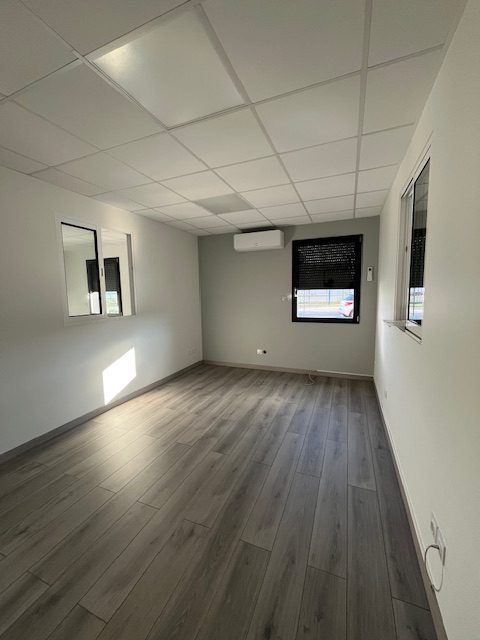 450 m2 au sol comprenant une partie accueil, bureaux, sanitaire, cuisine, 2 entrepôts de 90 et 270 m2 avec mezzanine, 2 portes sectionnelles. Au 1er étage on trouve la mezzanine, un stockage d'env 90 m2, un bureau et un wc.