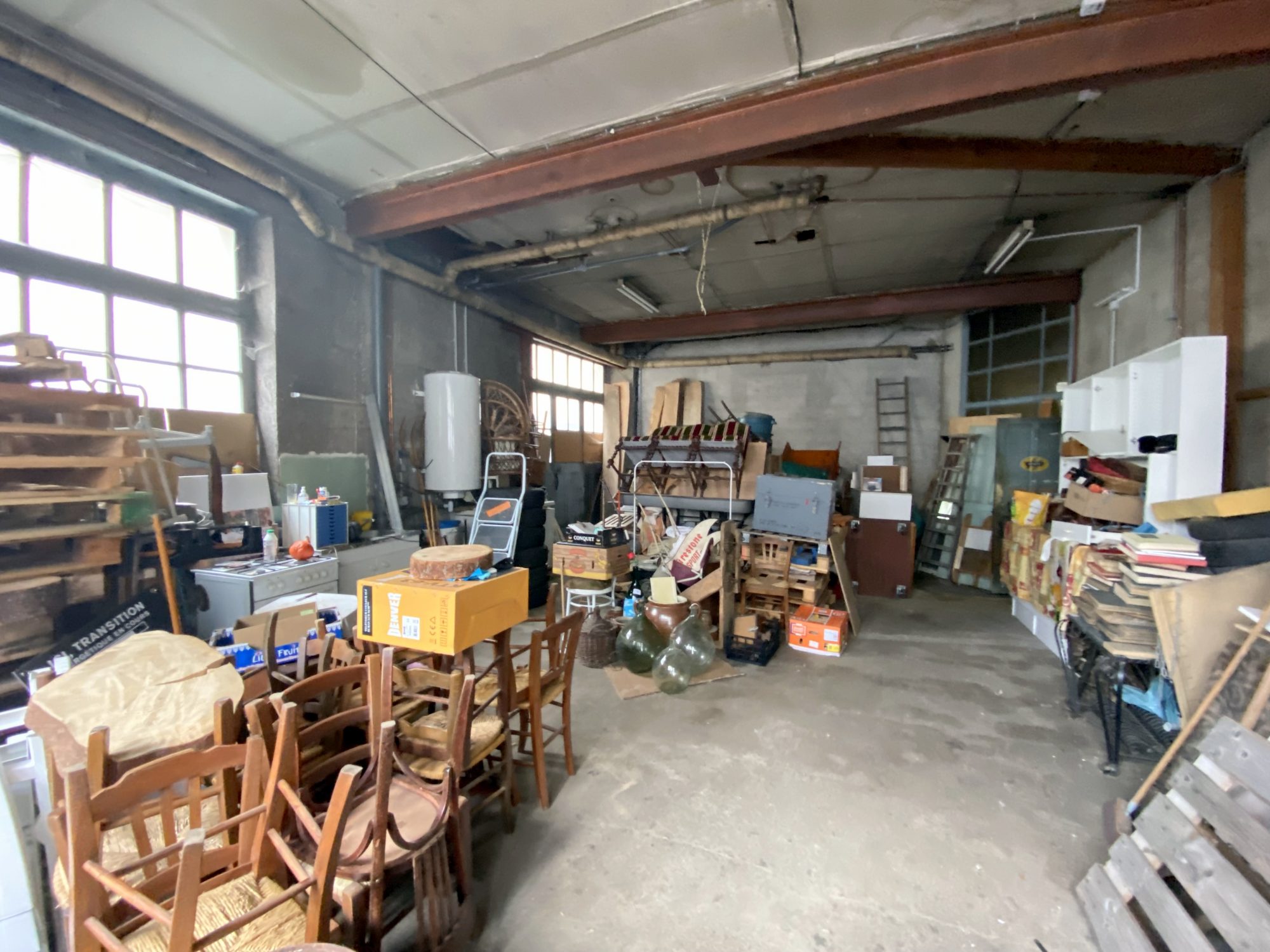 Au rez de chaussée, on retrouve un grand garage de 70m² env, une chaufferie de 35m² env et un ancien local commercial pouvant être réhabilité de 26m² env.