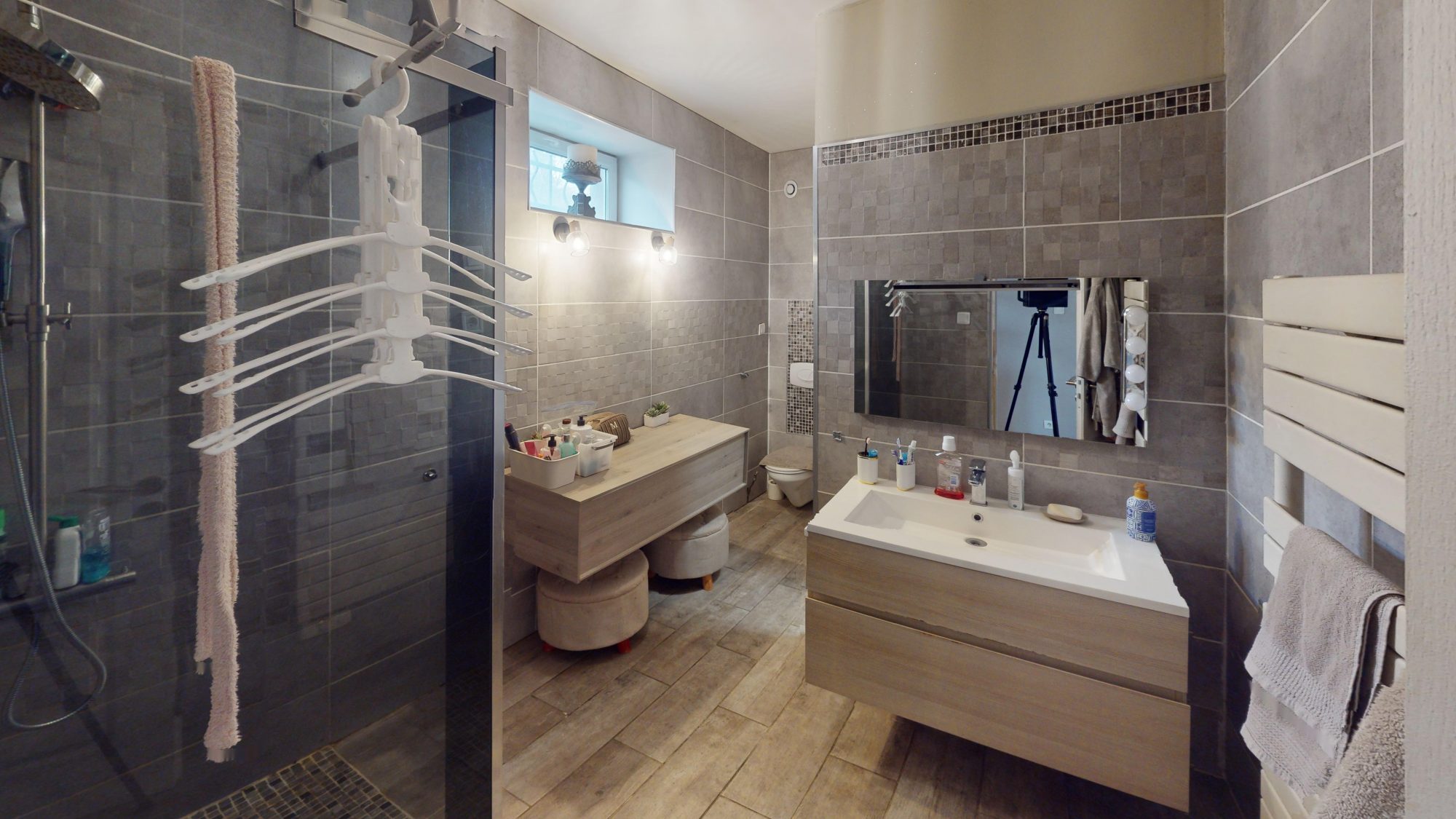 A l'étage, 2 grandes chambres, dressing et salle d'eau avec coin buanderie.