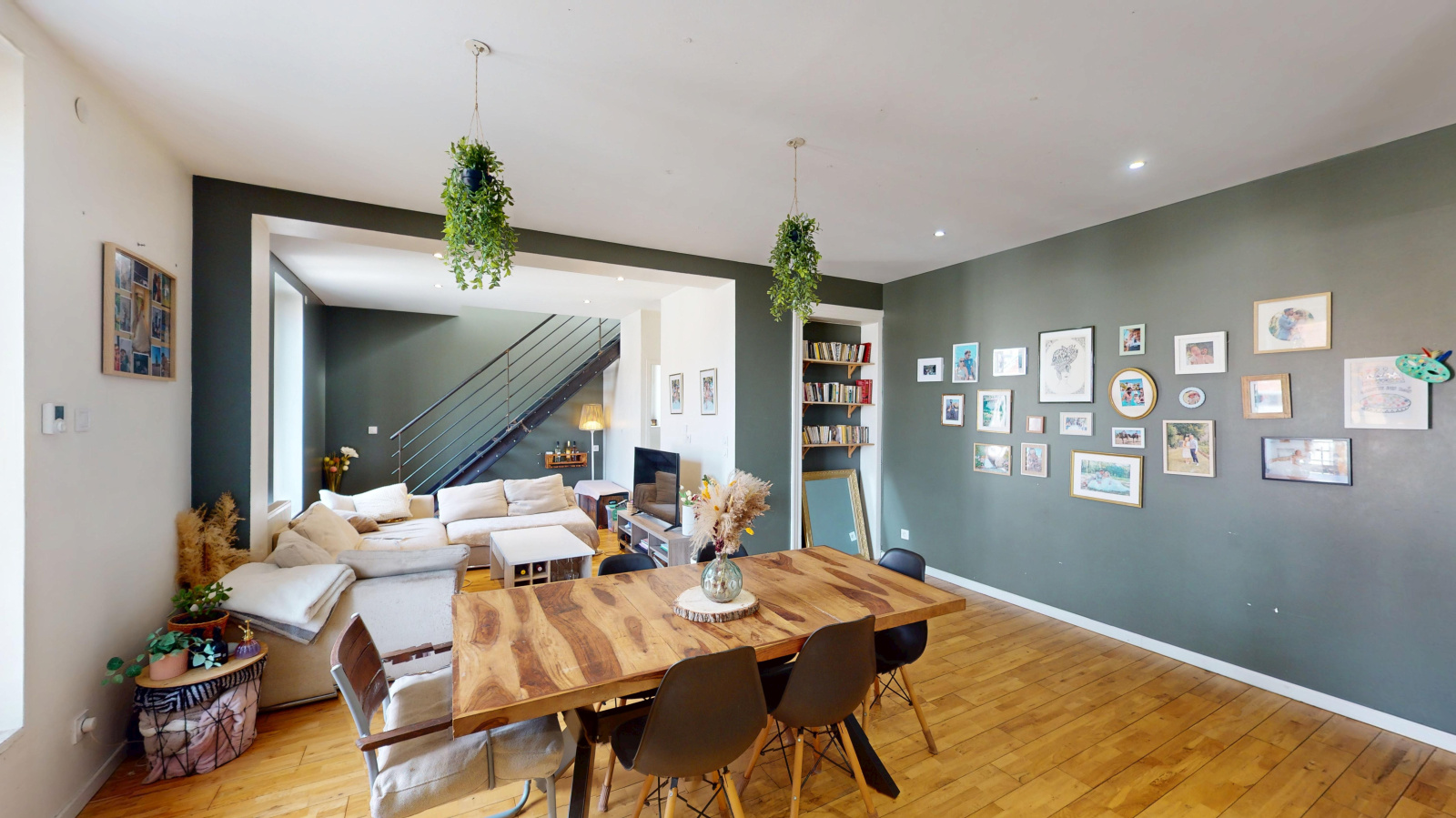 Au 1er niveau, cuisine équipée ouverte sur un grand séjour, buanderie et WC 1.