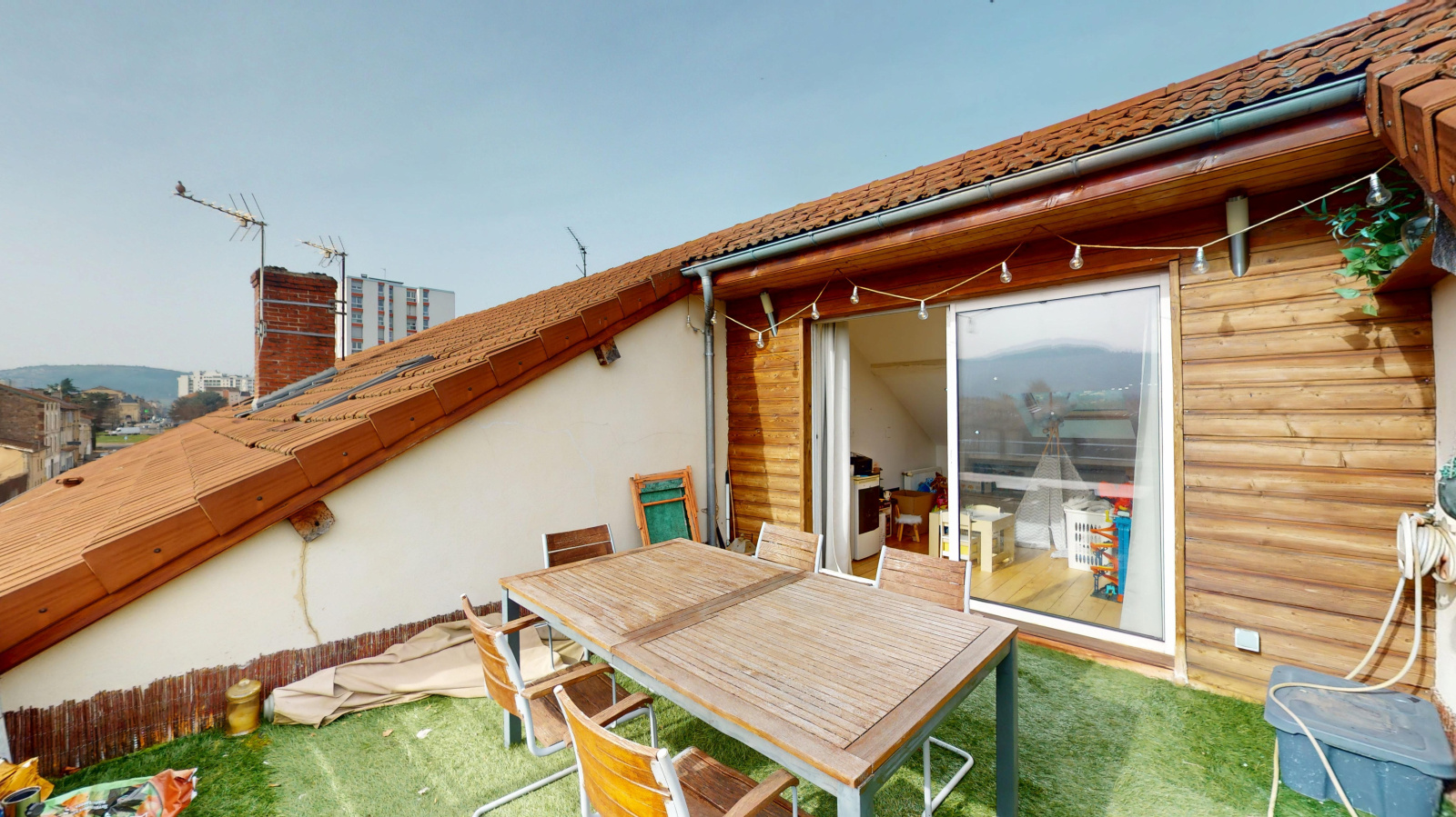 A l'étage, grande terrasse tropezienne, 3 chambres, salle de bain + douche + WC 2.