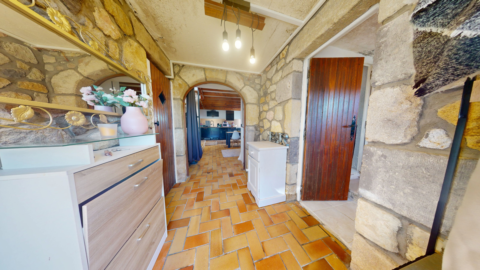 D'une superficie habitable de 70m2, elle se compose d'un salon séjour avec poêle à bois ouvrant sur terrasse , une cuisine aménagée, une chambre , une salle d'eau, une buanderie.