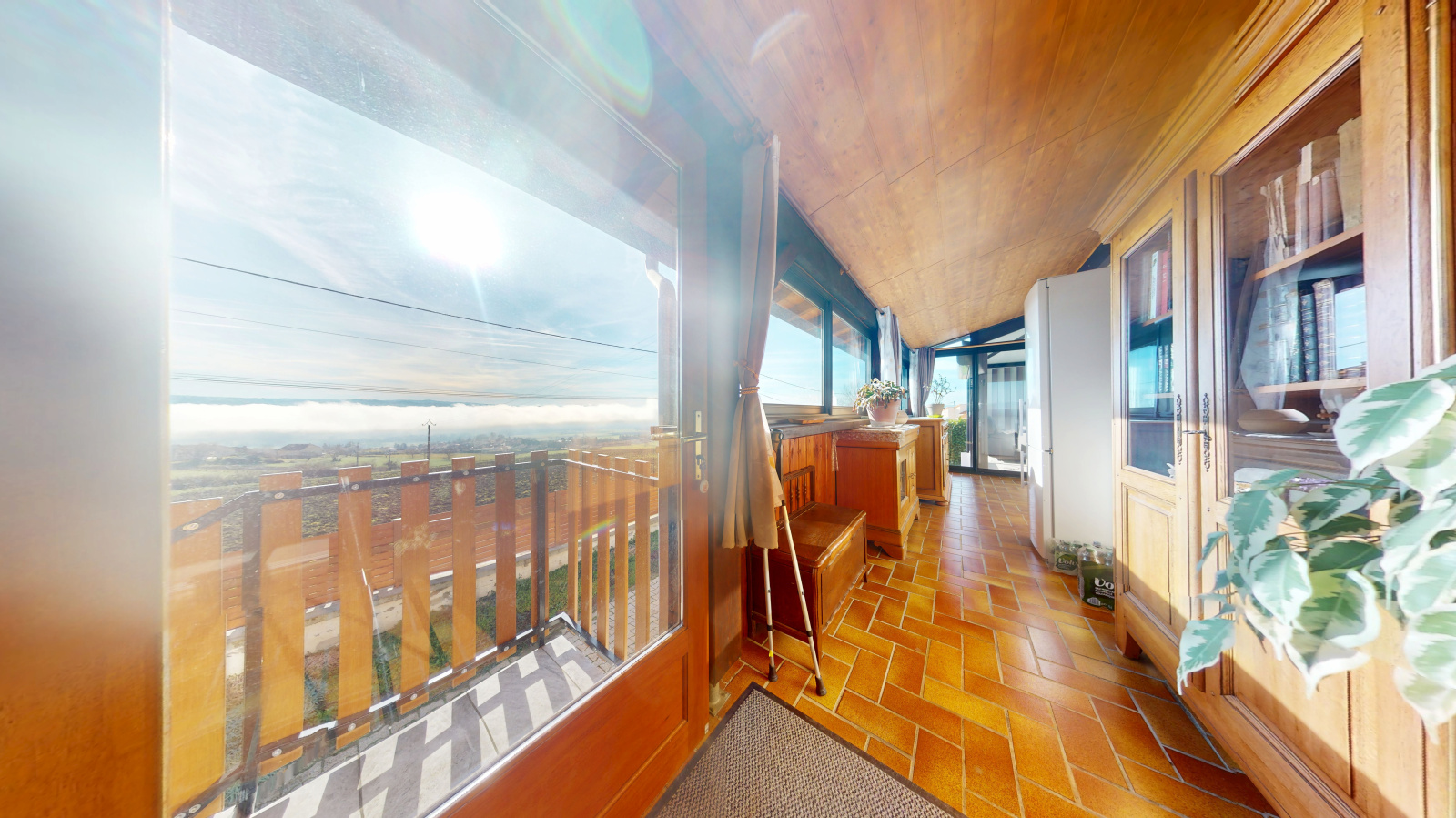 La partie habitable de plain pied se compose d'une entrée , une cuisine équipée avec accès à la chaufferie, un salon séjour avec cheminée insert, trois chambres , un bureau , une salle d'eau et trois vérandas offrant chacune des utilisations spécifiques avec une vue imprenable.