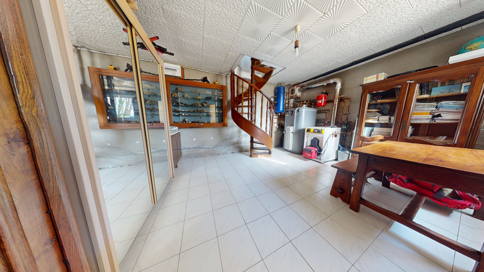 L'intégralité du sous sol est exploité, permettant un atelier, pièce de stokage , une cave et un garage.
