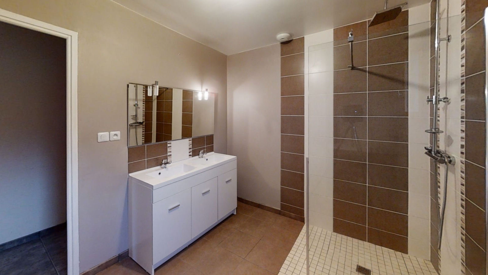 - salle d\'eau, douche + mble 2 vsq + màl + 1fnt. 7.5 m²