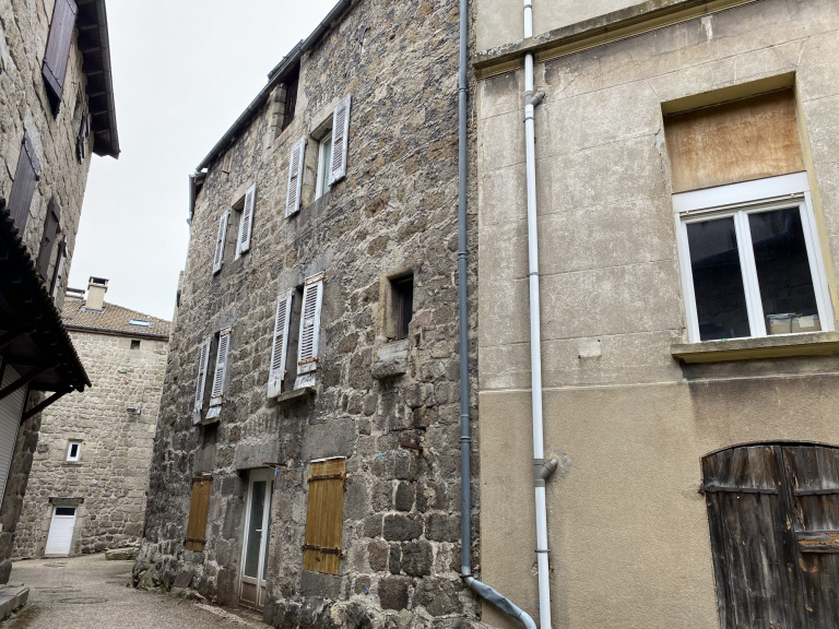 Centre de Tence, maison de bourg d'environ 102 m² habitables, à rénover. 2 niveaux plus combles. Sous-sol donnant directemant sur l'extérieur. Tout à l'égout, gros oeuvres en bon état, couverture à revoir.