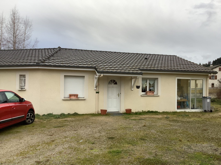 Rare ! Tence, maison p-pied de 2006, d?environ 97 m2 habitables, cuisine équipée ouverte sur séjour, cellier, 2 chambres, salle d?eau, wc, garage, 2 vérandas. Sur environ 680m2 de terrain plat. Tout à l?égout. Chauffage central électrique au sol.Sylvie TEYSSONNIER : 06 58 80 37 06.