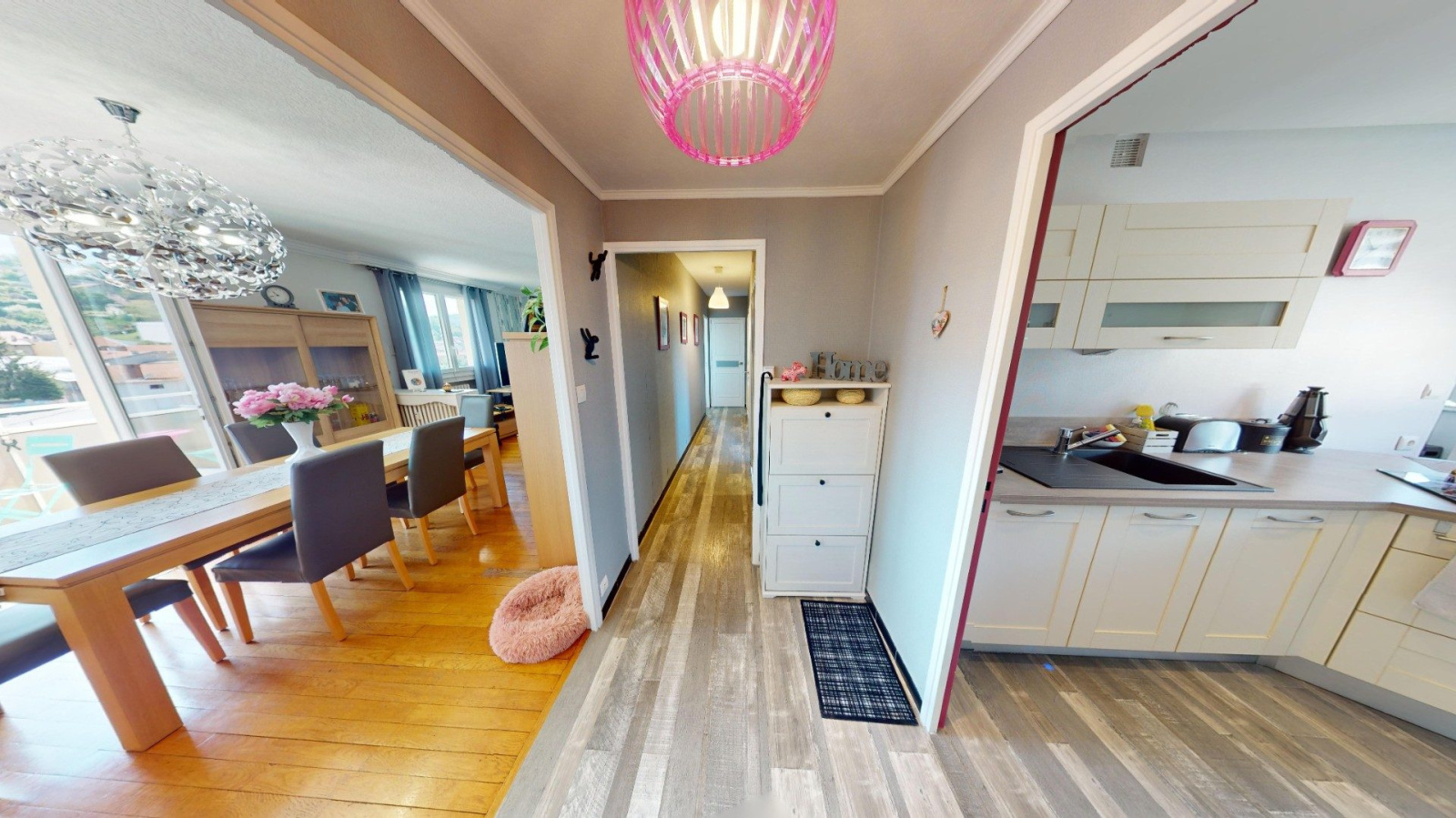 UNIEUX - BEL APPARTEMENT T4 - 82m² - GARAGE + BALCON + CAVE Il se compose d'une entrée, un séjour avec balcon de 8m² offrant une vue dégagée, une belle cuisine aménagée et équipée avec sa buanderie, une salle d'eau avec WC suspendu et de trois chambres dont 2 avec dressing et penderie. Un garage et une cave complètent ce bien.Fenêtres ALU/DV avec commande centralisée, pas de travaux à prévoir. A propos de la copropriété :Le bien comprend 3 lots et il est situé dans une copropriété de 89 lots, très bien entretenue, sécurisée et fermée avec espaces verts Pas de procédure en coursSurface : 81,75 m² (loi carrez)Pour plus d?informations, contacter Clémentine ASIS GUERRERO au 06.58.80.30.52