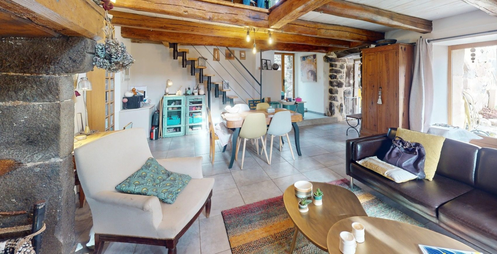 Exclusivité GTI : Belle Maison en Pierres à Lantriac Maison T5 d'environ 110 m² habitables composée comme suit. :RDC :- Une grande pièce à vivre avec accès à une charmante terrasse extérieure de 45 m2 - Une cuisine avec espace cellier, et un WC 1er Étage : - Un salon en Mezzanine suspendue, profitant de la chaleur de poêle à bois - Un espace chambre/bureau - Une Salle de bain avec WC (légères finitions à prévoir) 2ème Étage : - 2 chambres d'environ 12m2 chacune avec le charme de la charpente apparente - 1 salle de douche avec WC. En très bon état général, la maison à été rénovée en 2011 : - Fenêtre double vitrage - Chauffage au sol électrique (système hydraulique) - Poêle à bois STUV- Isolation refaite - Remise aux normes de l'électricité - Assainissement : tout à l'égout En complément, un espace de stationnement ainsi qu'un appendit pouvant servir de stockage. Taxe foncière : 723€/anProfitez du dynamise de Lantriac : établissements scolaires (ramassage scolaire), marchés, tennis, boulangeries, commerces, bureaux de poste et supérettes. Mais également du Puy-en-Velay à 15min. Accès nationale N88 à 7 km. Visite virtuelle disponible, n'hésitez pas à prendre contact pour plus d'informations. Votre contact : Simon DECHAUD - 06 31 75 16 78