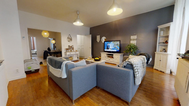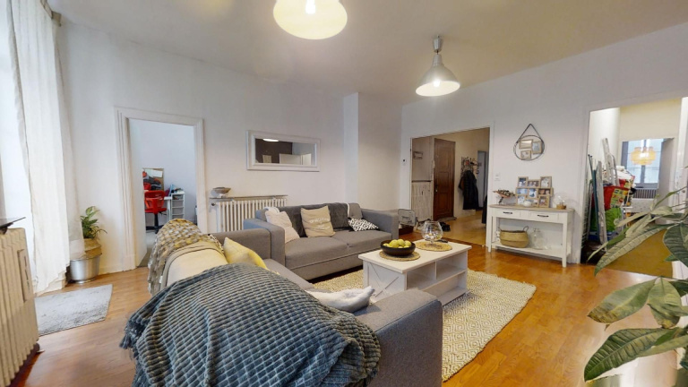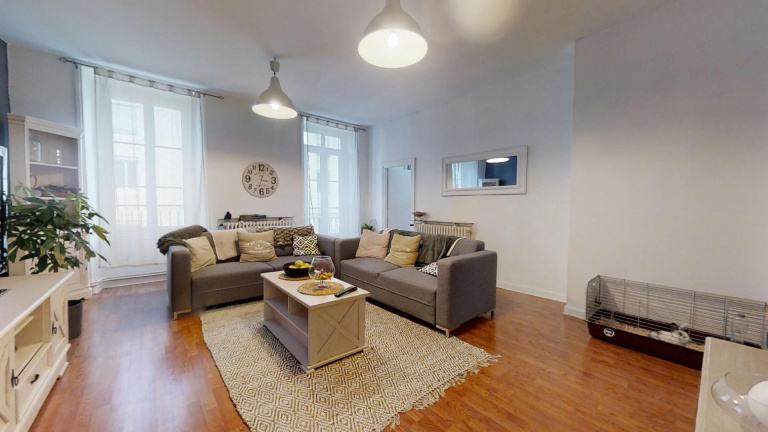 GRAND APPARTEMENT DE 100 m² TRAVERSANT AVEC BALCONSÀ vendre à Annonay (07100) : Grand appartement de 100 m² Carrez au 2e étage d'un immeuble sécurisé. Ce grand appartement inclut trois chambres ( 12 m² - 12,8 m² - 14,4 m² ), une cuisine aménagée ( 9,7 m² ), un double séjour d?environ (14,4 m² et 27,3 m²), une salle d'eau et un WC séparé. Possibilité de réaménagement ( création de deux appartements ), travaux d?électricité à prévoir. Les plus : il bénéficie d'une cave et de deux balcons.L?appartement est actuellement occupé ( loyer 560 HC ), la locataire a fait une demande de logement elle est en attente d?une réponse.À proximité immédiate du centre-ville: établissements scolaires, marchés, cinémas, restaurants, bureaux de poste. Accès autoroute A7 et nationale N7 à 15 km. Votre agence vous invite à découvrir toutes les originalités de cet appartement de 5 pièces en vente en prenant rendez-vous avec Hugo au 07.60.68.38.54
