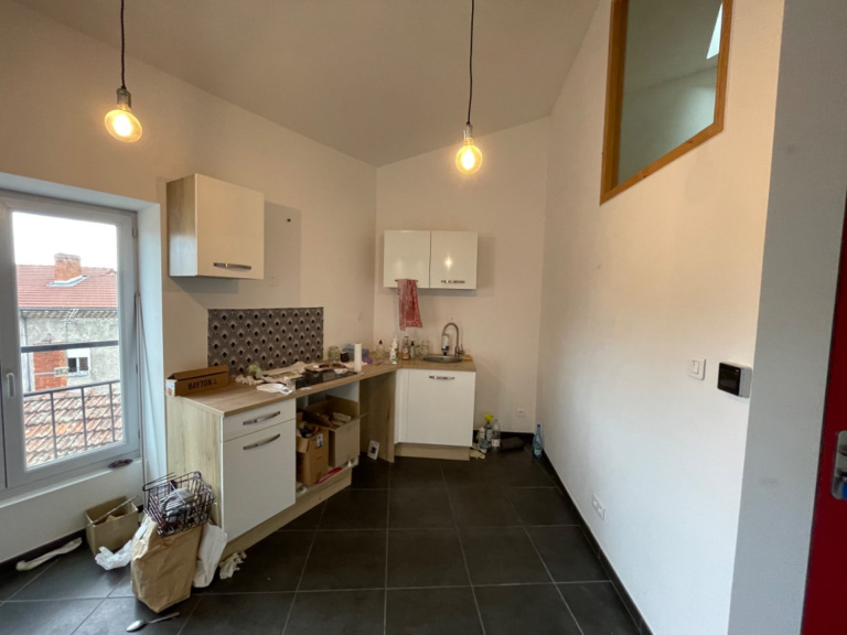 COUP DE C?UR - DERNIER ÉTAGE À vendre sur la commune d'Annonay (07100) : Appartement de 43,26 m² Carrez au 4e et dernier étage d'un immeuble sécurisé. Cet appartement comporte un séjour/cuisine d?environ 40 m² avec salle d?eau et WC séparé. À l?étage, une mezzanine aménagée en chambre avec un dressing ou bureau. Ce bien comporte aussi une cave. Cet appartement a été rénové en 2015. ( Électricité, isolation, fenêtres, carrelage etc..)Les communs ont été rénovés en 2014, pas de travaux de prévu sur la copropriété. Syndic professionnel.Possibilité de le louer entre 450 et 470€ ( charges comprises ). À proximité de toutes commodités. Découvrez toutes les originalités de cet appartement en vente en prenant RDV avec votre agence ANNONAY.