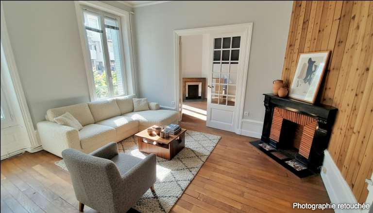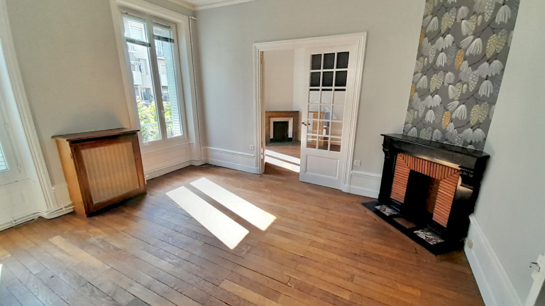 Appartement de caractère de 92 m², 4 pièces dont 2 chambres (possibilité d’une 3ᵉ), situé au 2ᵉ étage. Grand volume avec plancher, double orientation offrant une très belle luminosité grâce à des fenêtres sur chaque façade et des balcons de part et d’autre. Cuisine séparée, cave et espace au grenier complètent ce bien. Actuellement loué, ce logement présente un fort potentiel pour un investisseur ou pour un acquéreur souhaitant conserver le charme de l’ancien tout en aménageant une configuration à trois chambres.