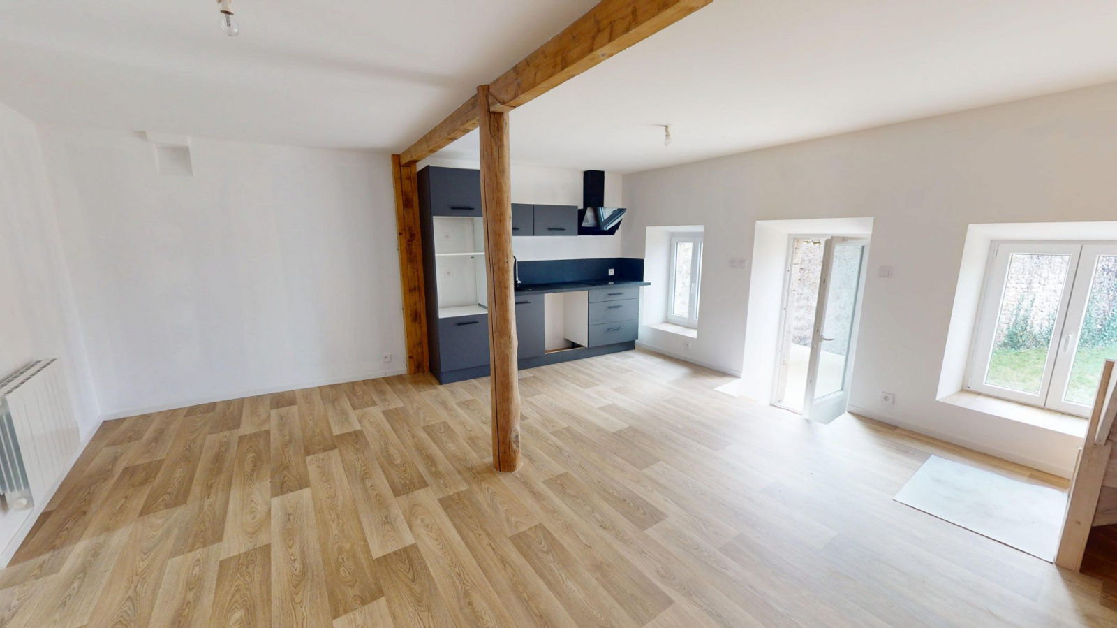 - cuisine meublée et équipée ouverte sur séjour (plaque induction, hotte) 28 m²