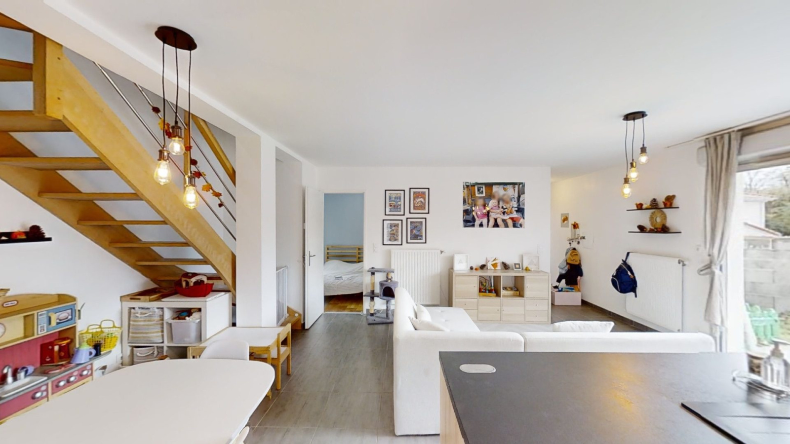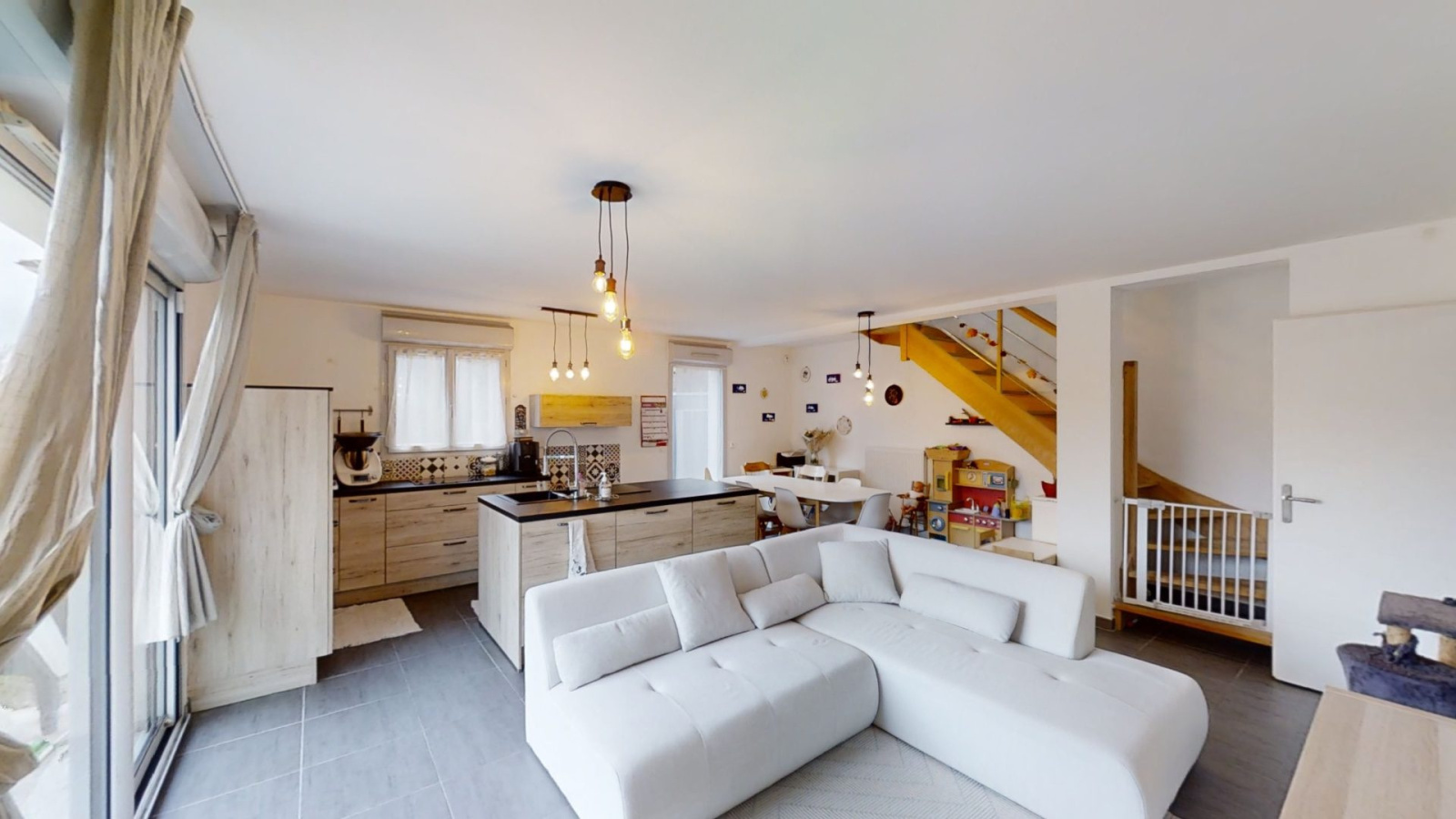 EXCLUSIVITÉ! Maison individuelle de 2017 (RT 2012) 99m2 hab. répartis sur 2 niveaux et terrain de 340m2.Au RdC, cuisine équipée ouverte sur séjour 35m2 avec accès jardin, une chambre, salle d?eau et WC.À l?étage, 3 grandes chambres, salle de bain et 2ème WC. Chauffage individuel gaz, fenêtres PVC DV + VR elec, panneaux photovoltaïques, VMC, système d?alarme, garage électrique avec coin buanderie. La maison se situe à proximité des commodités : transports, commerces et écoles.Visite virtuelle disponible.Pour plus d'informations, contactez votre conseiller Vincent-Lucas GONZALEZ au 06.58.79.98.32