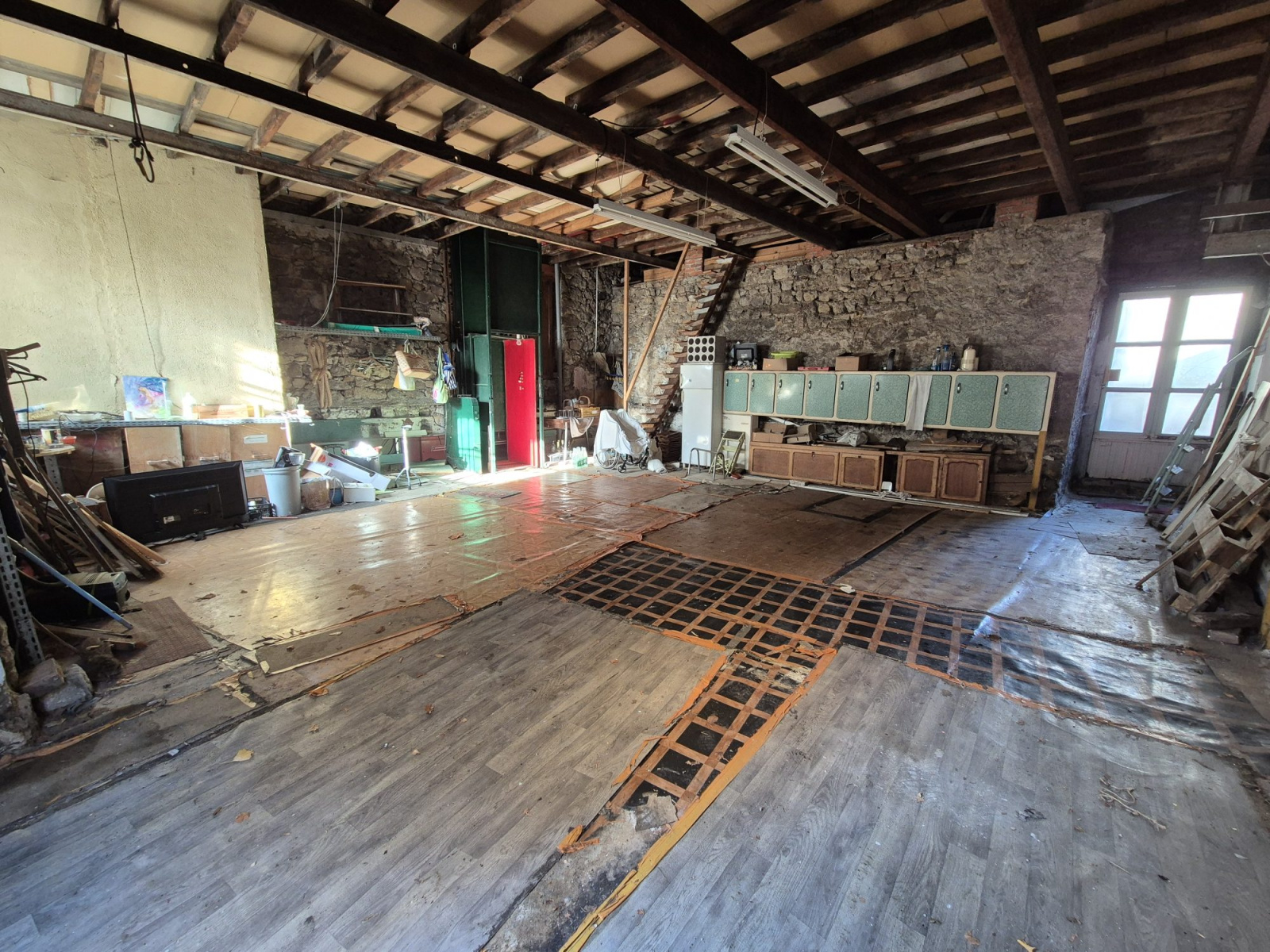 Ensemble immobilier composé de : Un appartement non habitable de 54 m2 à rénover entièrement. Un atelier de 48 m2 Un garage de 56m2 Un appartement de 96 m2 composé de 3 chambres à rénover entièrement. Un appartement de 96 m2 composé de 2 chambres à rafraichir et isoler.