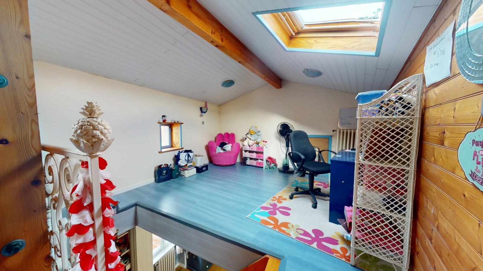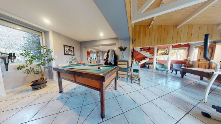 La partie habitable se décompose en une magnifique pièce de vie très lumineuse d'une superficie de 70m2 avec cuisine ouverte et cellier . A l'étage retrouvez deux chambres, un bureau et une salle d'eau ainsi qu'une troisième chambre au 2ème étage.