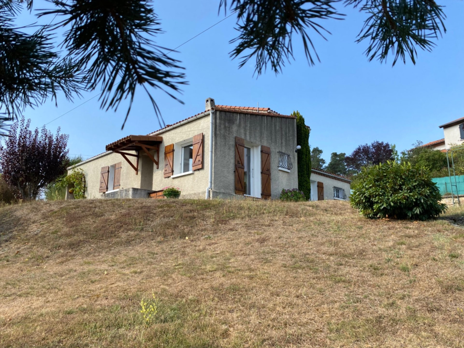 EN EXCLUSIVITÉ !!! A 5 mn du centre ville, maison des années 80 d?environ 94m2 avec une cuisine avec un cellier, un séjour avec cheminée et en accès direct sur la terrasse, une chambre avec dressing, une salle de bain, un WC et à l?étage un coin bureau et une chambre. Un garage attenant. Terrain clos et arboré piscinable avec une belle vue d?environ 2000m2. Une cave indépendante. COUP DE C?UR ASSURÉ !! Prévoir budget rafraîchissement.Pour plus de renseignements, vous pouvez contacter Beatrice Liogier au 07 60 45 82 72. Visite virtuelle sur le site GTI IMMOBILIER.