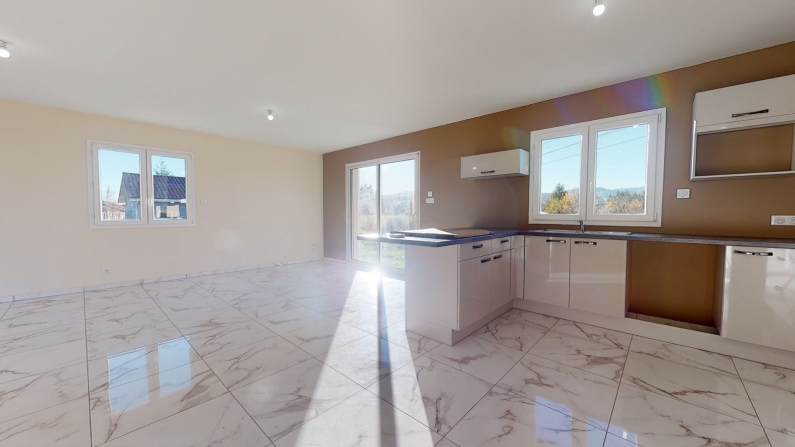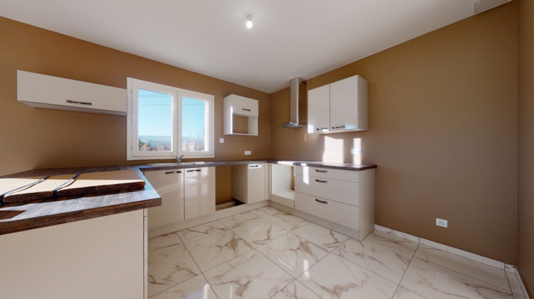 Aux portes d?Ambert ! Plain pied de 2020, avec cuisine équipée et ouverte sur le salon de 40 m2 env. donnant sur une terrasse, trois chambres, salle de bain (baignoire, douche italienne), garage et vide sanitaire. Une vue dégagée et un terrain entièrement clos d?environ 2200m2 complètent ce bien. Portail électrique, Isolation de qualité, double vitrage de qualité, chauffage aérotherme.En exclusivité chez GTI ImmobilierPour plus de renseignements, Frédérique Jorand 0665930215