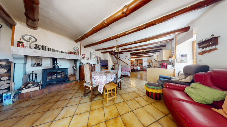 - salon sejour coin cuisine poele a bois gaine 40 m²