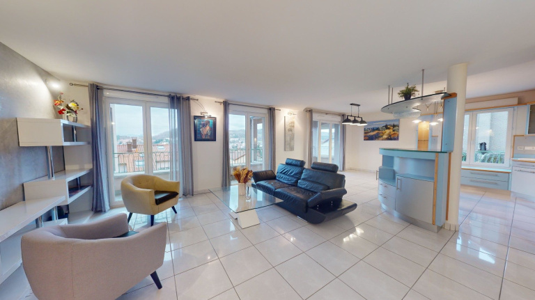 COUP DE C?UR - GRAND APPARTEMENT 5 PIÈCES avec une très belle vue sur le Puy-en-Velay et ses monuments A découvrir, Bel Appartement 127 m² avec balcon, accessible de plain pied. Très belles prestations haut de gamme, l'appartement offre un cadre de vie très agréable, sur les hauteurs de la ville avec toutes les commodités et le confort nécessaire. Son intérieur est composé comme suit :- Une grande pièce à vivre salon/salle à manger avec cuisine ouverte - Un grand Balcon bordant l'appartement - Quatre chambres dont une suite parentale - Une salle de bains - Un espace Buanderie- Deux WC (dont un séparé )Autres infos. : - Volets roulants électriques - Menuiseries double vitrage PVC. - Chauffage au sol, Gaz de ville - DPE : C - Electricité aux normes En annexe, il bénéficie d'une cave et de deux garages rassemblés en 1 grand garage (rangement, stationnement véhicule + établi) Vue dégagée. Coup de c?ur. Excellent état général. Proche gares de toutes les commodités.Plus d'information et visite possible : Votre contact Simon DECHAUD : 06 31 75 16 78