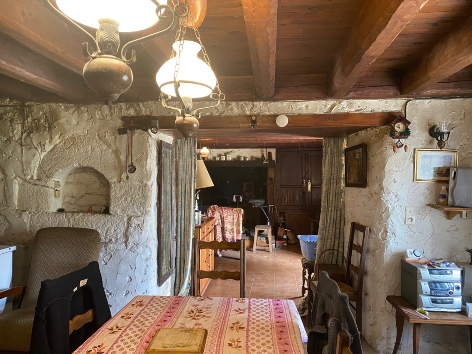 En exclusivité chez GTI ! Cette maison en pierres avec beau potentiel, située dans un hameau vous séduira à coup sûr !D?une surface de 167m2, elle se compose comme suit : une salle à manger de 25 m², un salon de 24 m² avec une cheminée en pierres, une cuisine indépendante, quatre chambres dont 2 petites, une salle d'eau, deux wc, un grenier de 28 m². 2 caves et un garage complètent le bien. Les petits plus : Parcelle de 400m2 - Source sur le terrain - Vue panoramique.Travaux à prévoir, dont assainissement.Prenez contact sans attendre avec Frédérique Jorand au 0665930215.