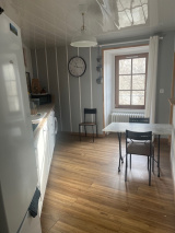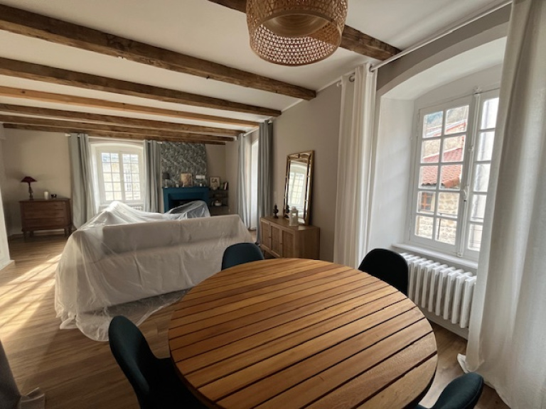 Jolie maison en plein coeur du village d'Olliergues, calme et lumineuse, rénovée avec goût et confort, elle offre de beaux volumes, d'une surface habitable d'environ 147 m2 sur 3 niveaux. Elle comprend une entrée, séjour-salon, cuisine semi-ouverte sur séjour. A l'étage, une belle pièce isolée avec charpente apparente donnant beaucoup de caractère de 54 m2 environ en cours de finition, plancher neuf, évacuation et arrivée d'eau déjà prévues, (possibilité de créer une salle de bains et chambres supplémentaires). Au rez-de-chaussée on trouve un palier desservant 2 belles chambres et une salle de bains avec wc. Garage et atelier. Chauffage central au gaz, chaudière et cumulus neufs, tout à l'égout. Proche des commerces et services accessibles à pied. Aucun entretien extérieur.