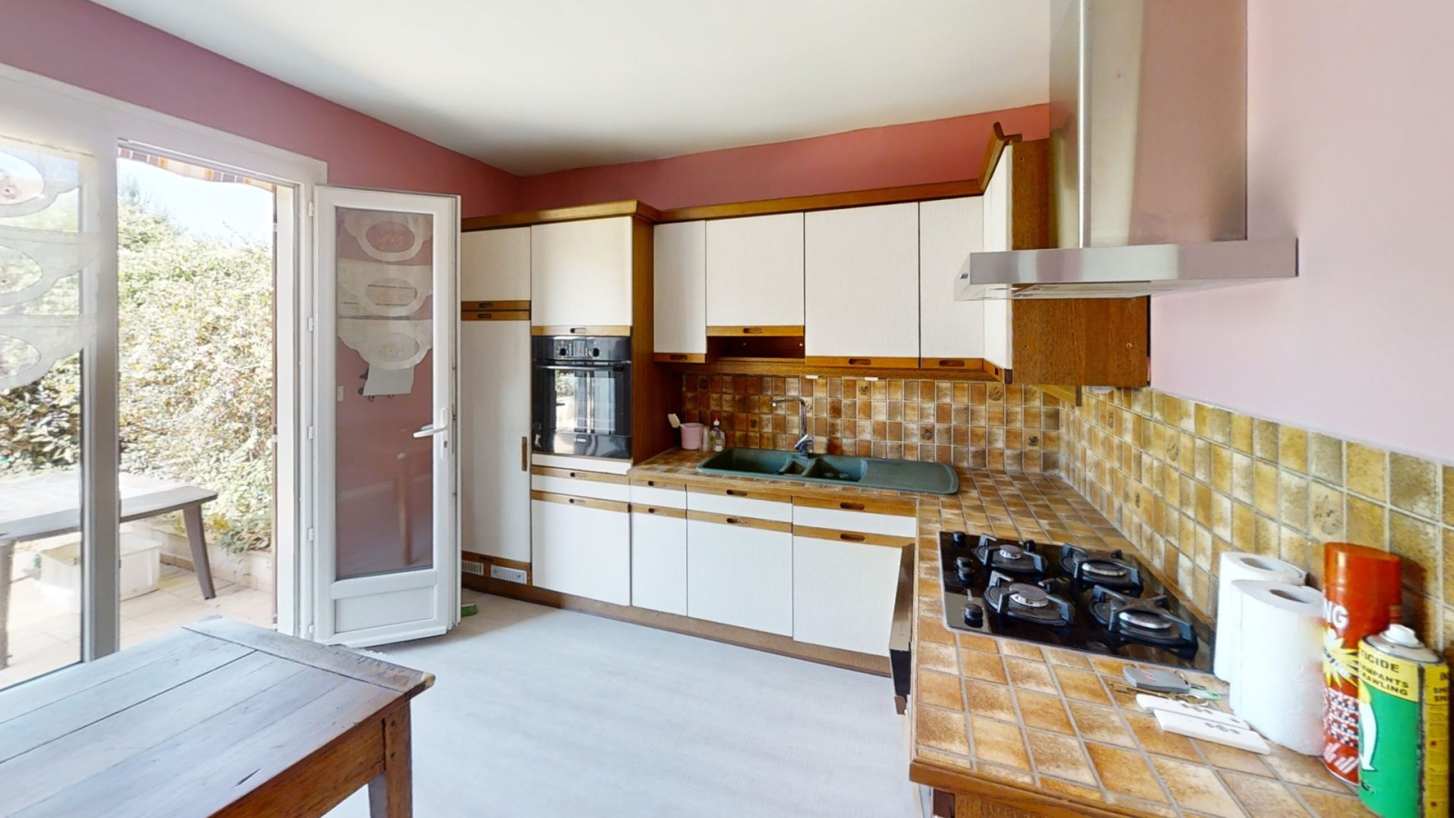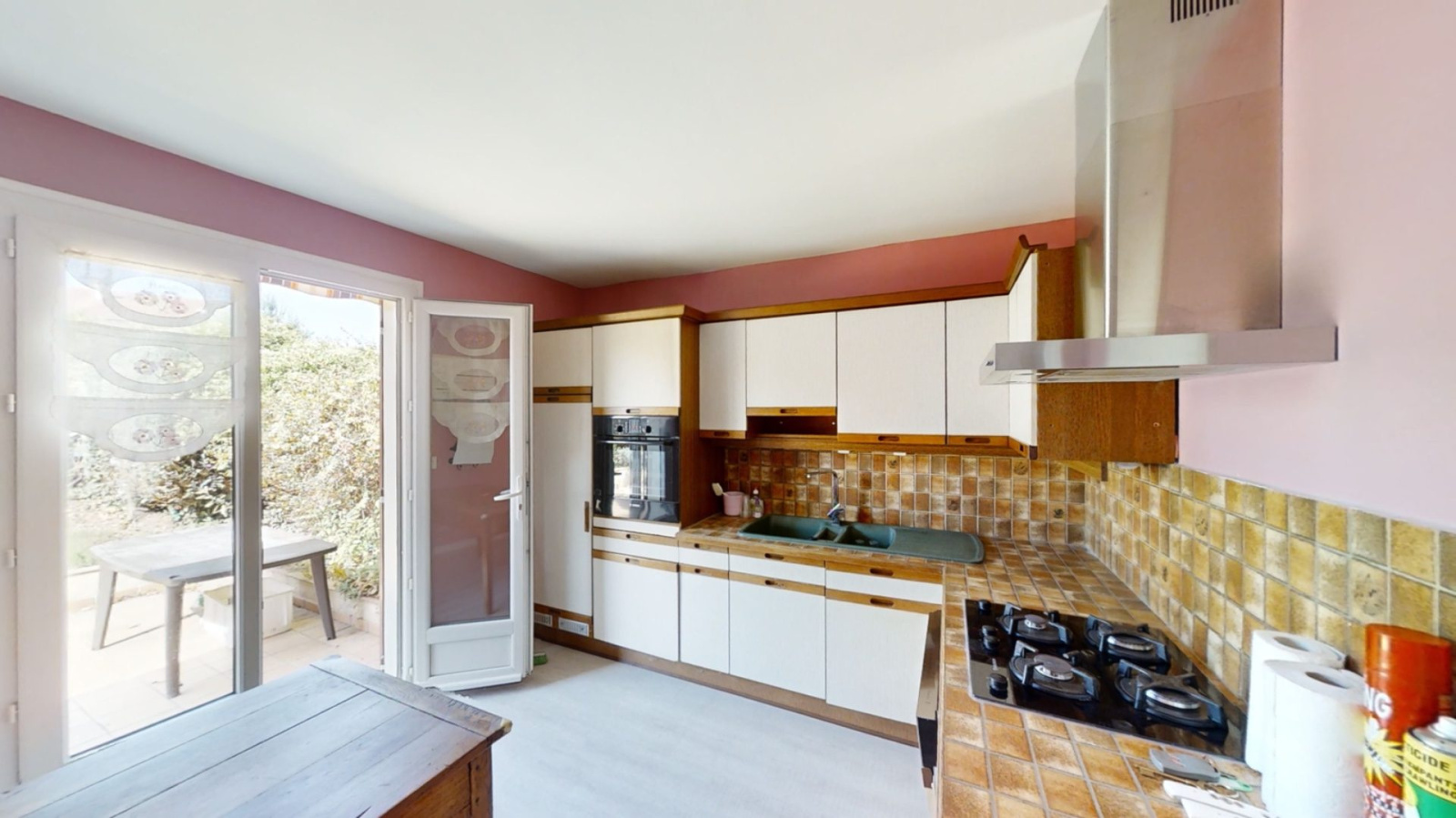 - cuisine, aménagée 1980 + pte fnt /terrasse, exposition : o 12.0 m²