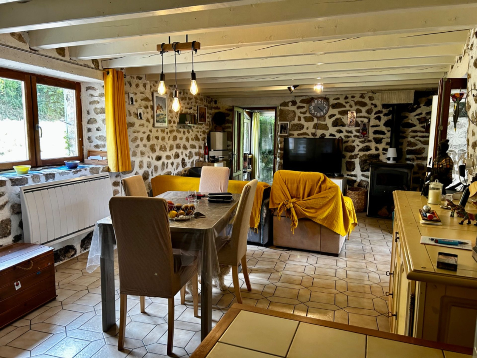 Vous recherchez un pied-à-terre authentique et au calme, ne cherchez plus, cette agréable maison en pierres est faite pour vous.Au rez-de-chaussée, vous trouverez une pièce de vie avec murs en pierres apparentes et deux vérandas . À l'étage, une chambre, un vaste palier pouvant faire une chambre supplémentaire et une salle d?eau pour un total de 89m2 habitable.La maison donne sur un jardin joliment agrémenté et fleuri et offre une vue dégagée sur le Forez.Une dépendance non attenante avec une pièce aménagée et un garage viennent compléter l?ensemble.Double vitrage - poêle à bois - isolation.Pour tout renseignement ou une éventuelle visite, contacter Nicolas COUDERT au 0665930152.