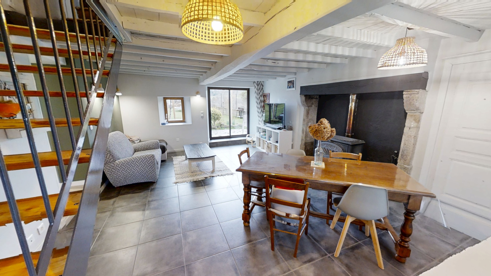 - séjour : poêle à bois 28,7 m²