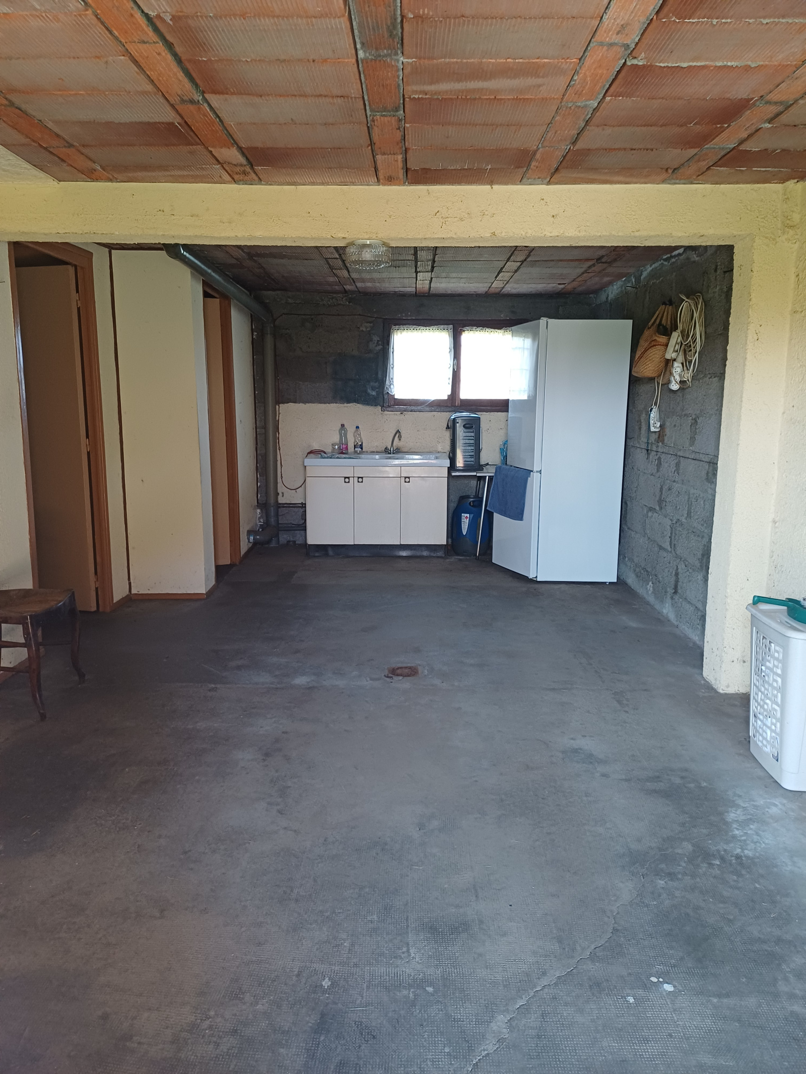 La maison propose en sous-sol/rez-de jardin: garage, atelier, WC/buanderie et cuisine d'été. A l'étage accéssible par une petite véranda: cuisine équipée, séjour, 2 chambres, WC et salle de bain.